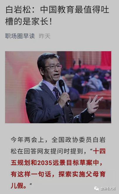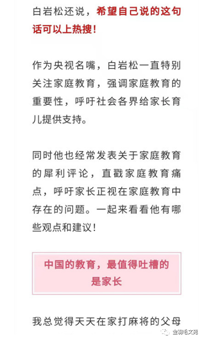 今天看到一篇文章《白岩松:中国教育最值得吐槽的是家长!》,见截图: